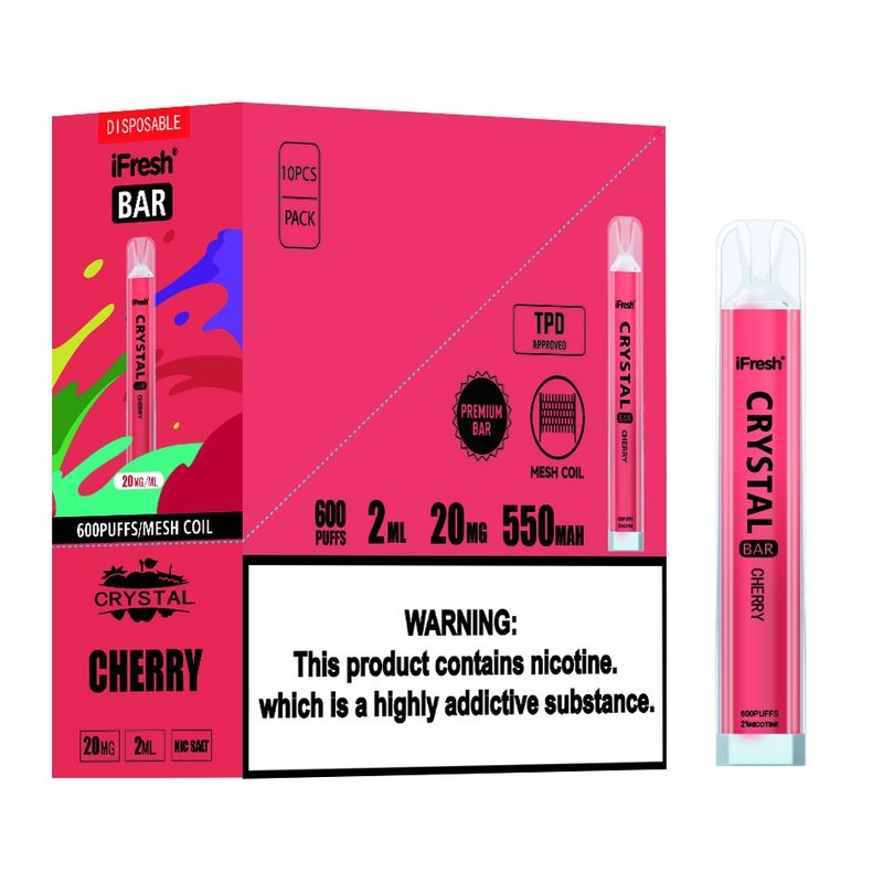 iFresh's TPD Vape (รหัสรุ่น IFD-102) เป็นผลิตภัณฑ์ที่สอดคล้องกับแนวทางการสูบบุหรี่อุปกรณ์นี้ทําจากคริสตัล และมีขนาด 104x 16mmมีความกระชับกําลังการออก 3.6V และแบตเตอรี่ขนาด 550mAh มีให้เลือกใน 10 สี
